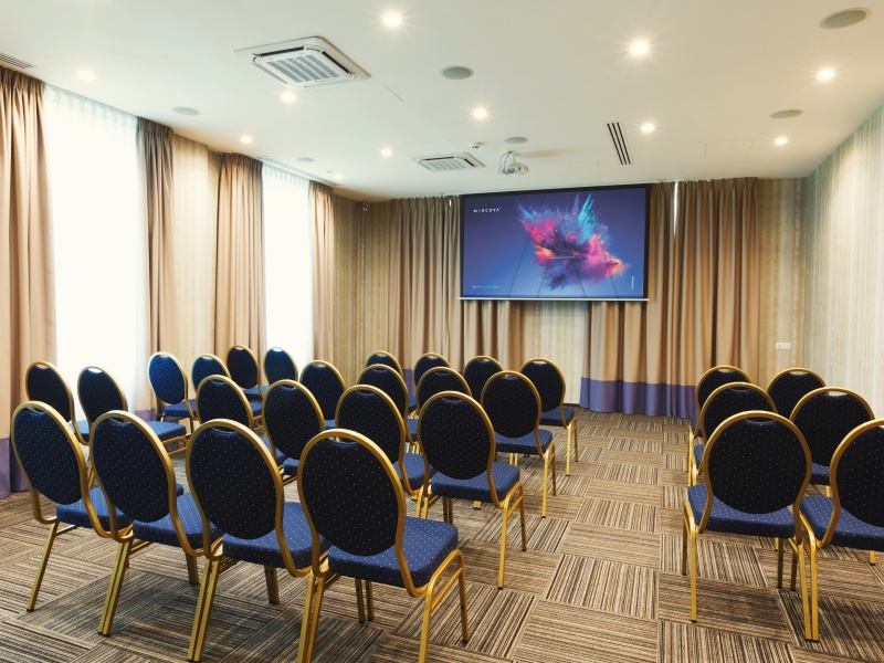 wideokonferencje, monitory, projektory, zintegrowane systemy sterowania, Standardowym wyposażeniem każdej Sali konferencyjnej jest wyświetlacz (projektor lub monitor wielkoformatowy), zestaw wideokonferencyjny składający się z kamery, mikrofonów i głośników (all in one lub oddzielnych). Przy bardziej rozbudowanych kompozycjach sprzętowych stosuje się systemy sterowania, gdzie za pomocą jednego panelu dotykowego wywoływane są pożądane funkcje. Można je również połączyć z istniejącymi budynkowymi np. zintegrować oświetlenie, automatykę rolet i uruchamiać z jednego panelu. Zgodnie z zasadą im prościej tym lepiej, przygotowanie do działania takiej sali konferencyjnej nie wymaga specjalnie przeszkolonych do tego osób, zajmuje mniej czasu jak i jest bardziej elastyczne. Dodatkowym atutem każdego pokoju spotkań jest system rezerwacji, tak z góry wiadomym jest to czy i która sala z jakim wyposażeniem jest wolna i w jakim czasie.